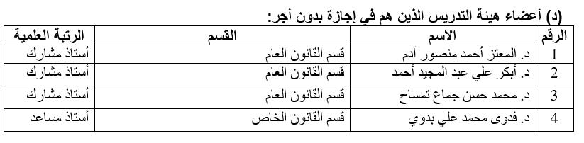 - ماجستير بالبحث فقط (رسالة) في القانون العام، أو القانون الخاص، أو الشريعة والفقه المقارن.