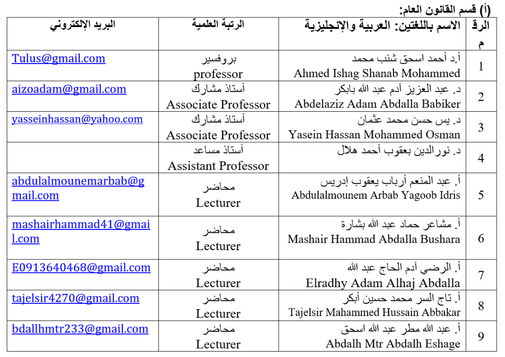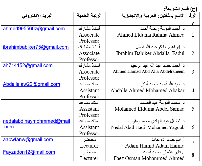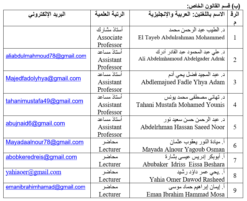 تضم كلية القانون والشريعة ثلاثة أقسام هي:
